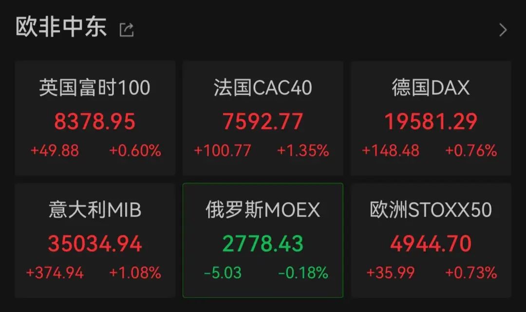 消息发布后,欧股涨幅扩大。