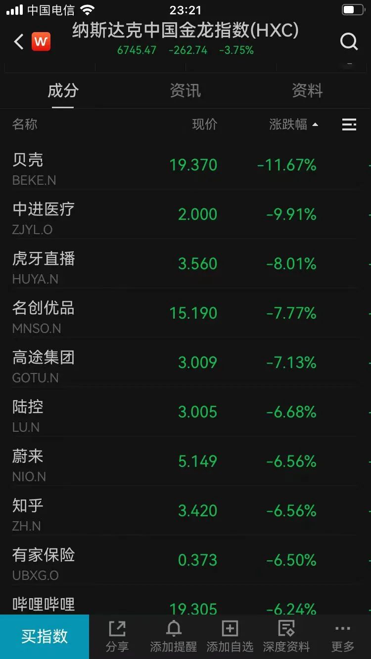 纳斯达克中国金龙指数跌幅扩大至3.72%。盘中,贝壳跌超10%,富途控股、哔哩哔哩跌逾6%。